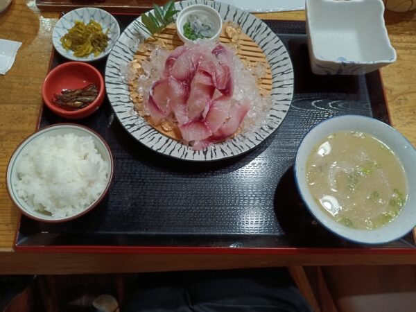気さくな店員さんが、生け簀から網へ取り出した魚を見せてくれました。