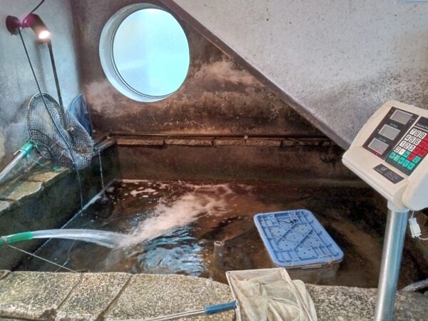 注文が入れば、生け簀から魚をとりだしてその場で調理ができます。